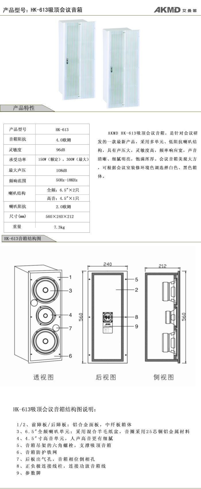 HK-613吸顶会议音箱